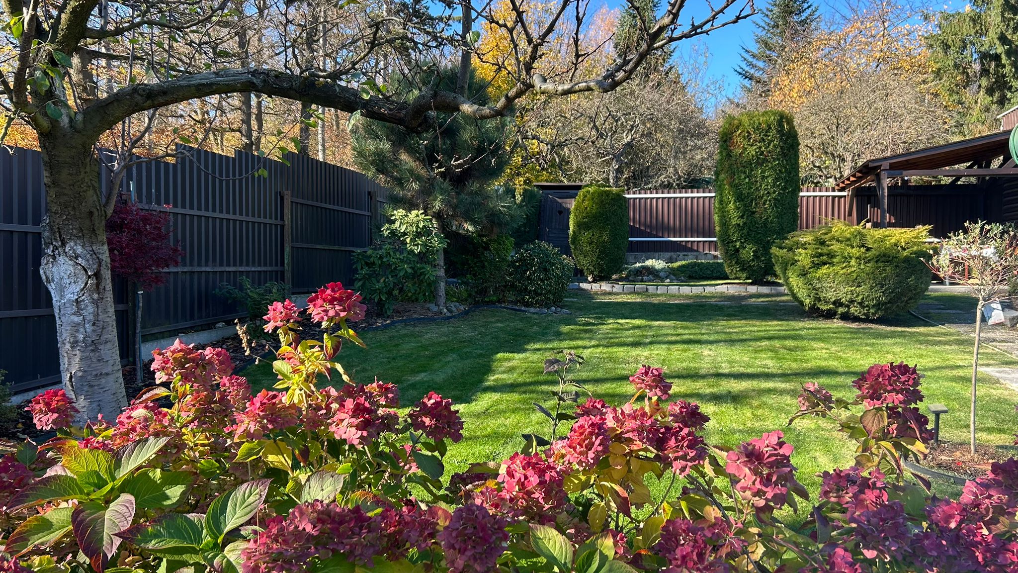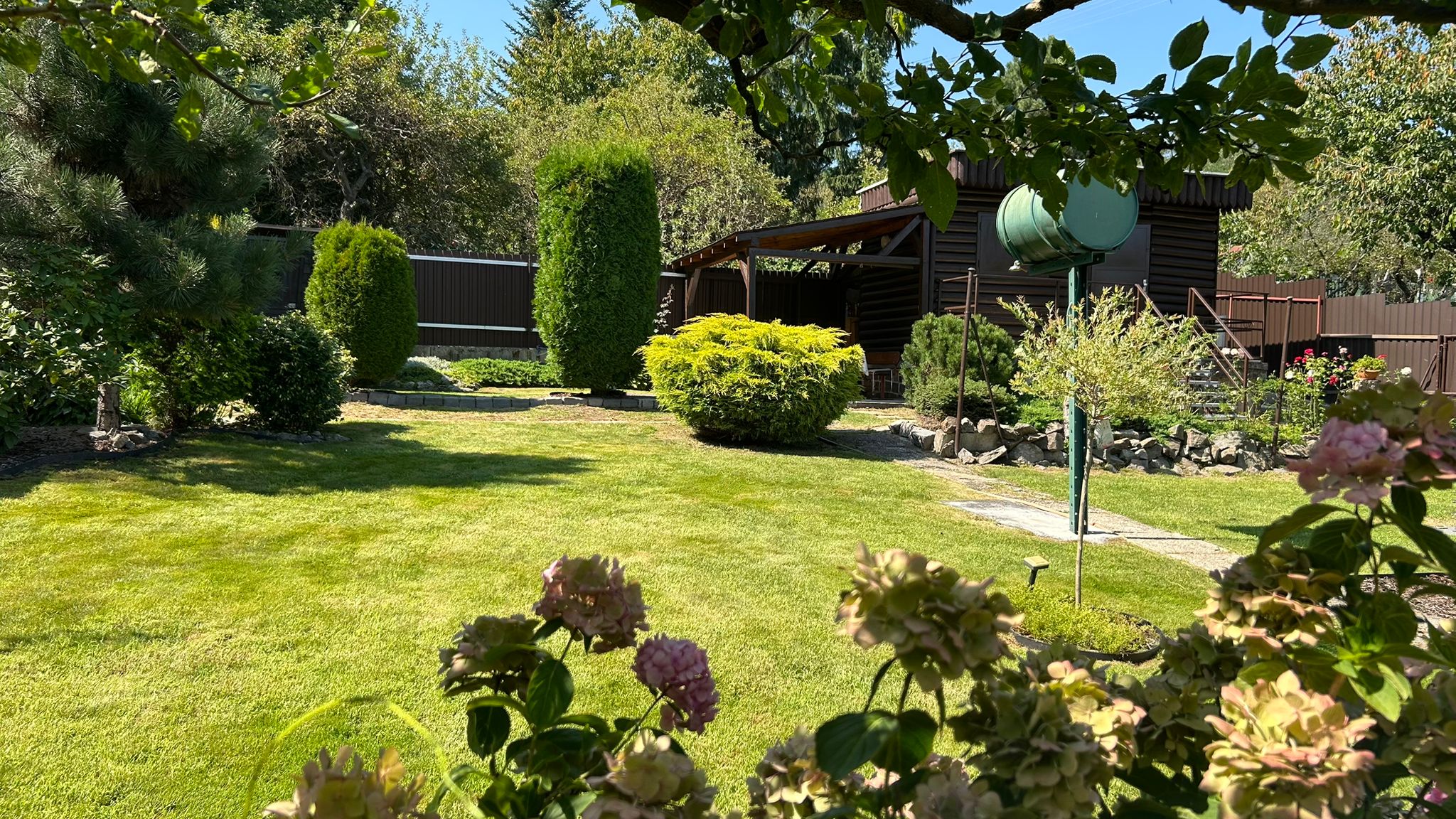 upravená záhrada s okrasnými drevinami